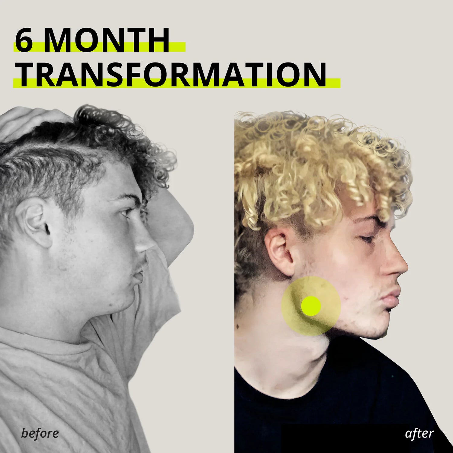 Chew consistently for 6 months to gradually strengthen your jaw muscles and enhance your facial definition. Notice subtle changes in the first month, a sharper jawline by month three, and a more sculpted, defined look by month six.